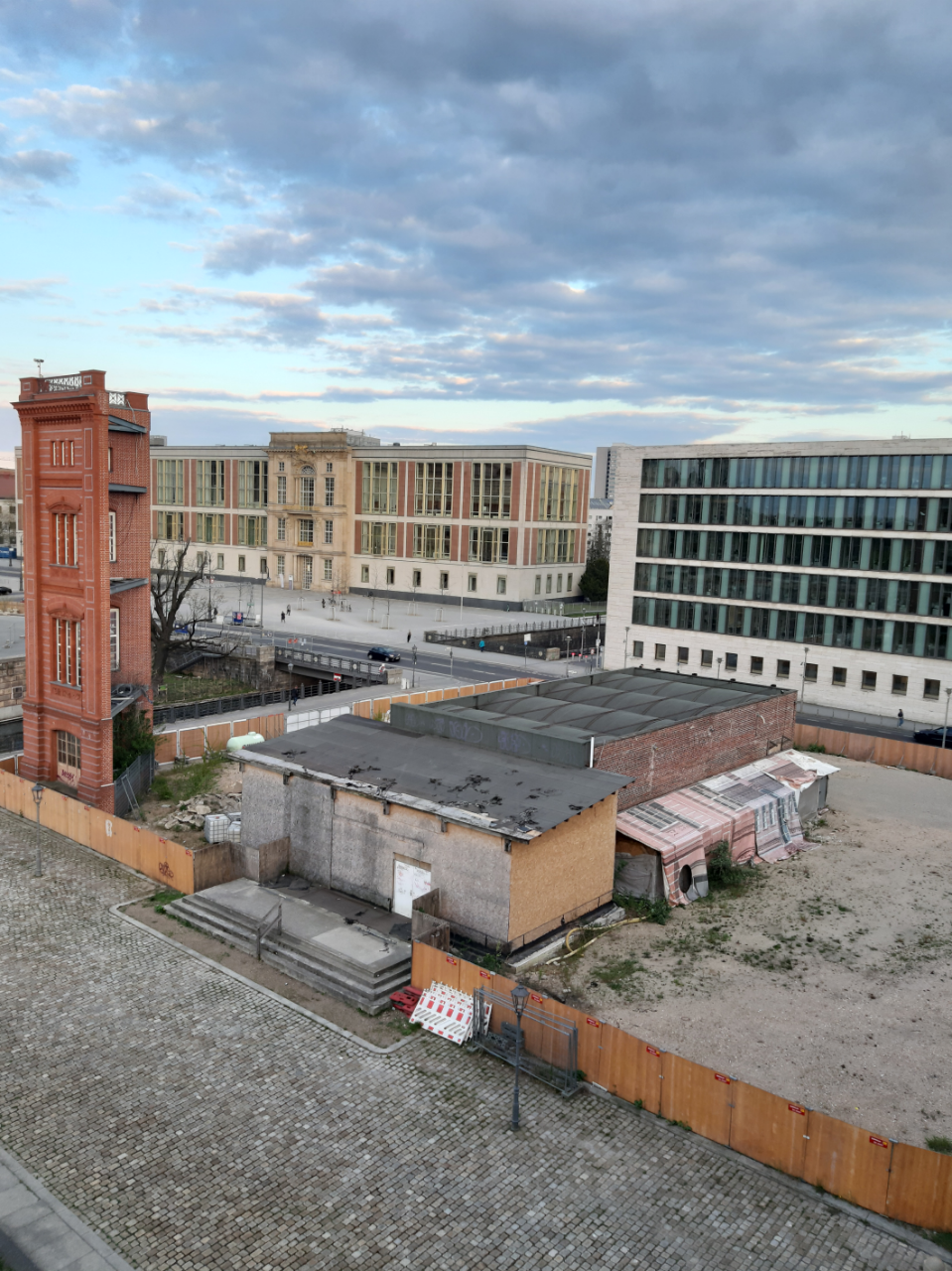Die Bauakademiesimulation befand sich zuletzt in einem bejammernswerten Zustand. Die Planen mit Abbildungen der Fassaden waren beschädigt, die Ostfassade fehlte sogar, und es flatterten Baufolien, die einen Blick in das Innere mit Gerüst und "Biotop" erlaubten. Da mit Wirkung vom 1. Juli 2019 das Grundstück, auf dem sich die bewirtschaftete Simulation befiand, wieder auf die Berliner Immobilien GmbH (BIM) überging, die es im Rahmen einer Tauschvereinbarung dem Bund zur Verfügung stellt, damit dort die Bundesstiftung Bauakademie das Gebäude der Schinkelschen Bauakademie wieder errichten und betreiben kann, bot sich eine Reparatur der Simulation nicht mehr an. Im Dezember 2019 wurde mit dem Abbau der Gerüstkostruktion und der restlichen Fassadenplanen begonnen. Die Musterfassade und der sogenannte "Rote Saal", der für den Zeitraum seines Bestehens genutzt werden kann, sind von dem Abbau zunächst nicht betroffen. Im Laufe des 2. Quartals 2020 wurde das Bauakademiegelände umzäumt. Ab dem 3. Quartal 2020 können - wie mehrfach mitgeteilt - zunächst archäologische Grabungen durchgeführt werden. Eine Fotozusammenstellung über die Bauakademiesimulation im Laufe der Zeit können Sie durch Anklicken des nebenstehenden Links aufrufen - bitte hier anklicken -.